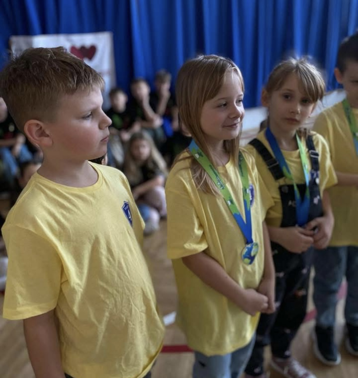 „Dziś, nasze Dzieciaki: MOTYLE z 1c i ISKRY z 2b otrzymały od Fundacji Dzięki Tobie – przepiękne i ważne MEDALE, które uroczyście wręczyła – Dyrektor Szkoły Pani Ewa Runo.